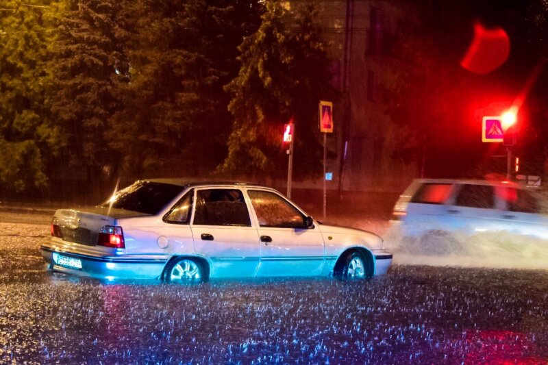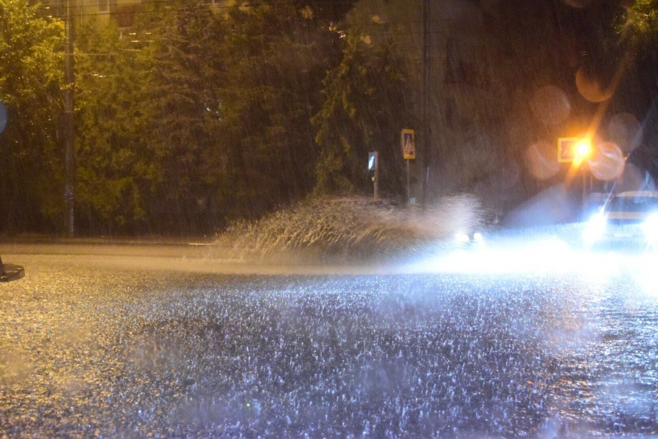 Сегодня ночью в Великом Новгороде прошел ливень, многие улицы города затопило.