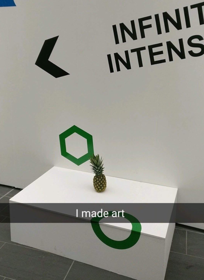 Шотландские студенты ради шутки оставили ананас в зале, где проходила выставка современного искусства Look Again. Организаторы посчитали фрукт экспонатом и поместили его под стекло.