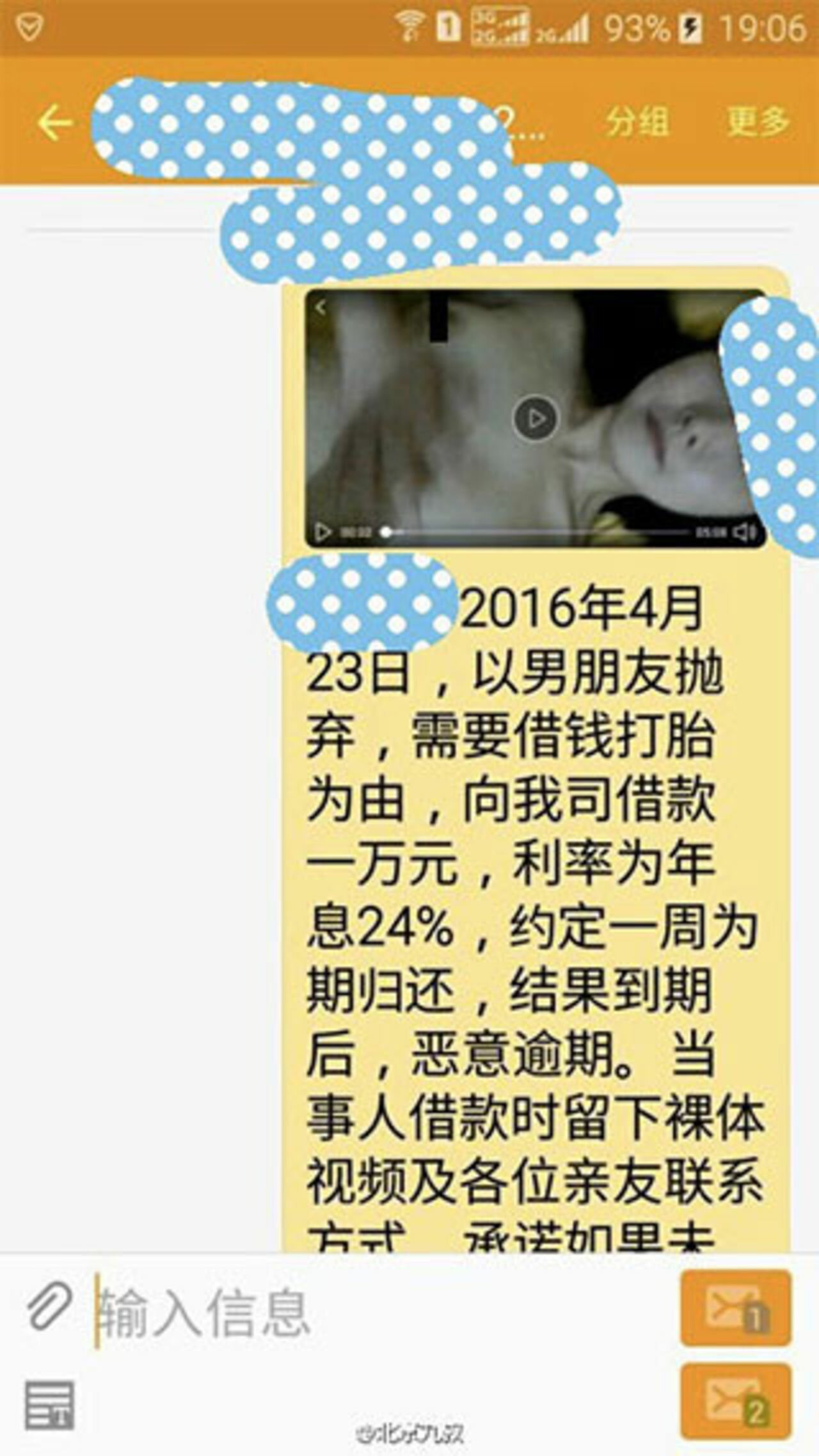 В случае не выполнению обязательств по возврату денег, кредитор угрожает опубликовать интимные снимки заемщика в сети или отправить фотографию родителям.